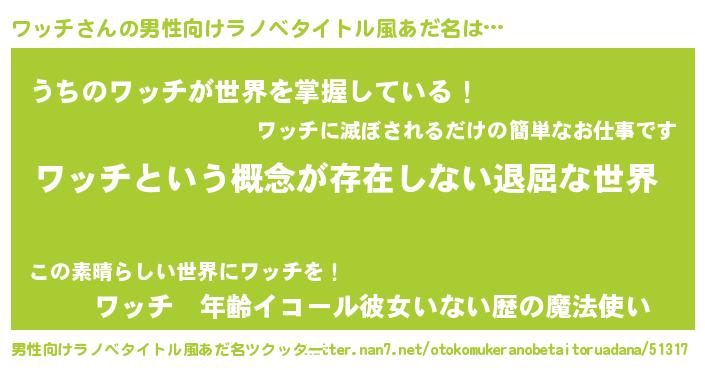 | 胡散臭い通販商品みたいなあだ名 | 『来世でも幸せになれる水素水…その名も「ワッチ」』 |