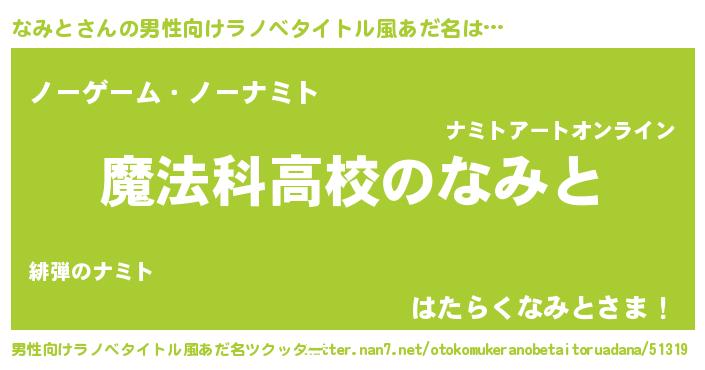 | ヒーロー風カッコイイあだ名 | 『超時空戦士ナミト』『慈愛の使者なみと』 |