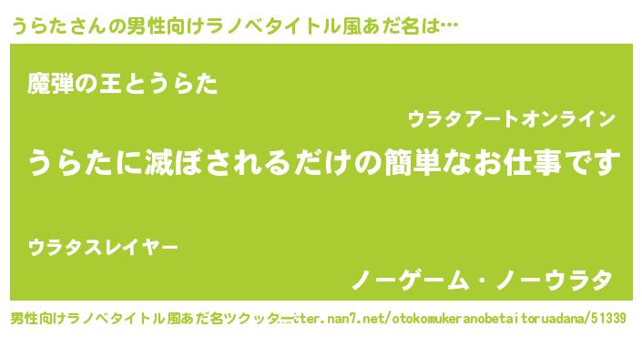 | 意味不明あだ名 | 『住所不定無職うらた(39歳)』 |