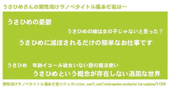 | ヘコむあだ名 | 『うさにゅー』『うさひめ(震え声)』 |