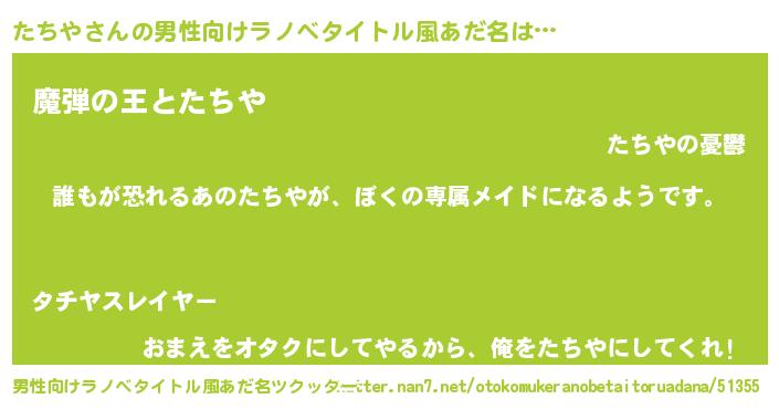 | ヒーロー風カッコイイあだ名 | 『ネオタチヤ』『仮面タチダー』 |