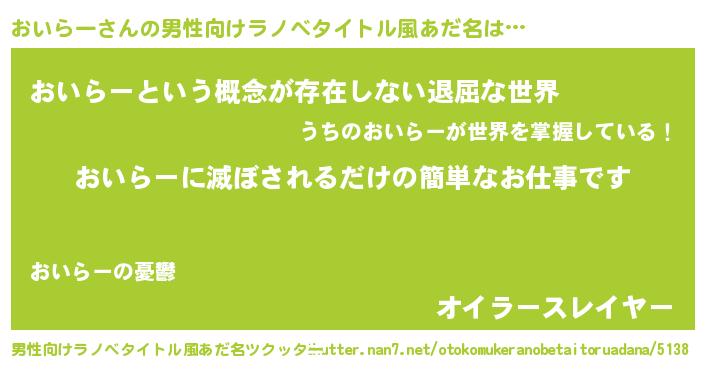 | ヘコむあだ名 | 『おいらー(笑)』『おいふぇ~』 |