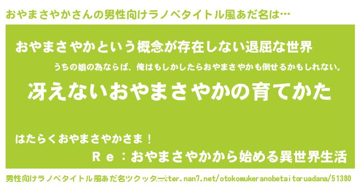 | 意味不明あだ名 | 『永久保存おやまさやか』 |