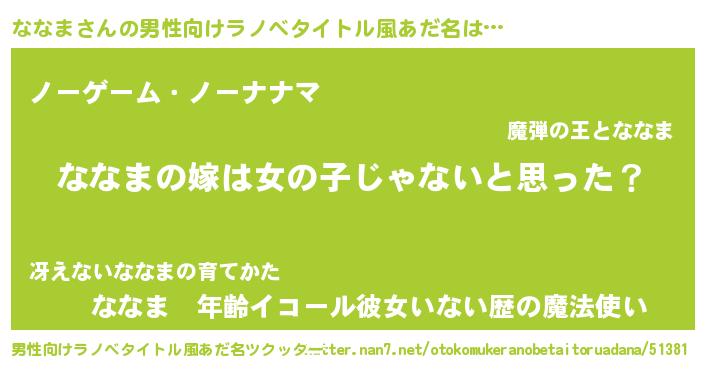 | 女子向けラノベタイトル風あだ名 | 『ななま様がみてる』『ななま恋絵巻』 |