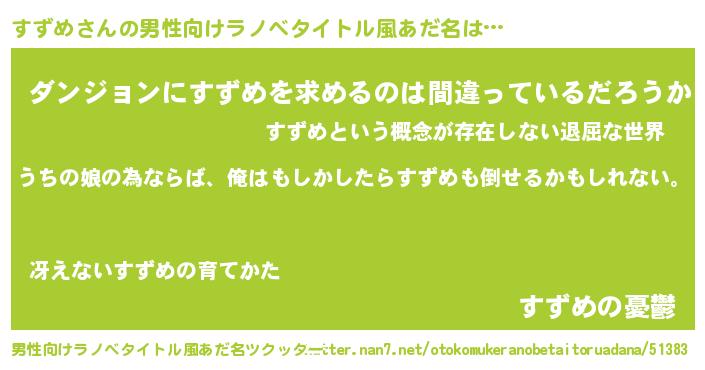 | ファンタジー風あだ名 | 『エターナルスズメー』『スズフェル』 |