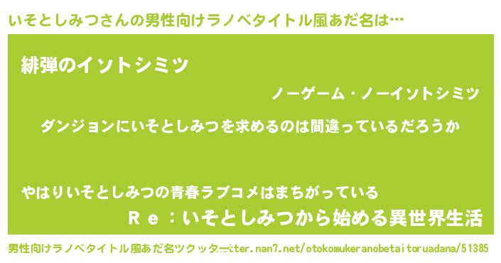 | 胡散臭い通販商品みたいなあだ名 | 『信頼と実績のペンダント…その名も「いそとしみつ」』 |