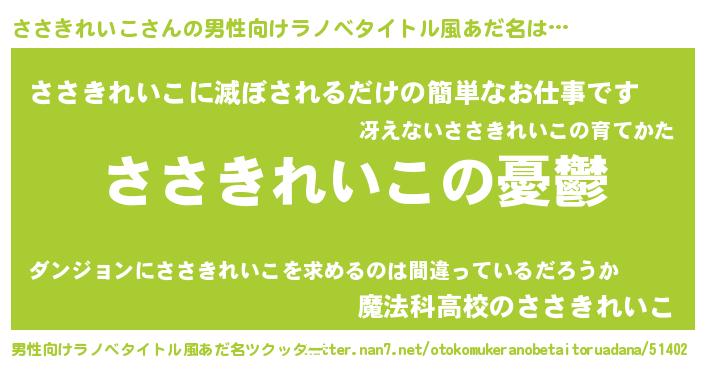 | 肩書あだ名 | 『ささきれいこ御曹司』 |
