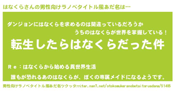 | ヘコむあだ名 | 『はなお』『はなくら(苦笑)』 |