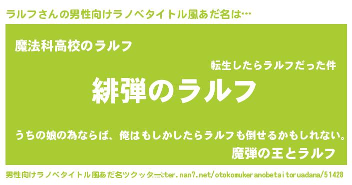 | ヒーロー風カッコイイあだ名 | 『ウルトラ戦士ラルフ』『仮面ラルダー』 |