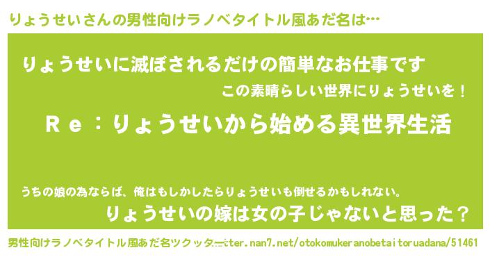 | 女子向けラノベタイトル風あだ名 | 『闇のりょうせい』『りょうせいの婚約者』 |