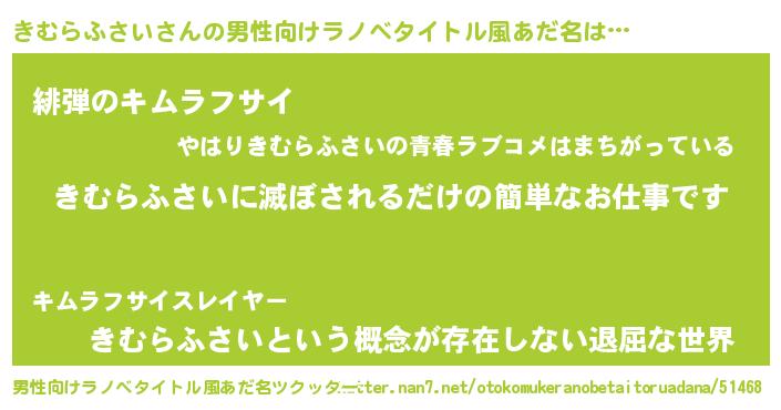 | 意味不明あだ名 | 『永久保存きむらふさい』 |