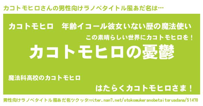 | 胡散臭い通販商品みたいなあだ名 | 『必ず成功する水晶球…その名も「カコトモヒロ」』 |
