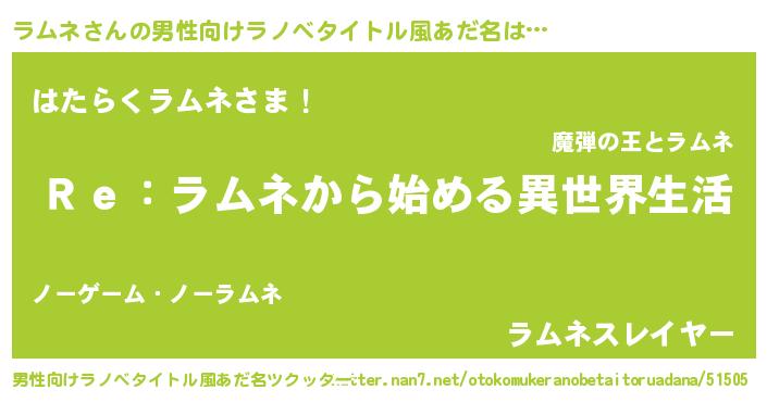 | ヒーロー風カッコイイあだ名 | 『究極戦士ラムネ』『仮面ラムダー』 |