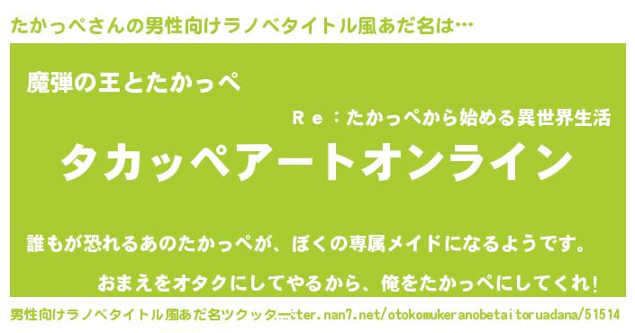 | 女子向けラノベタイトル風あだ名 | 『たかっぺ姫と円卓の騎士』 |