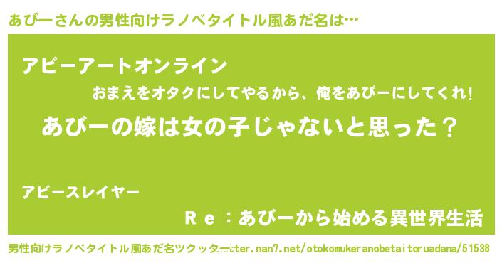 | 意味不明あだ名 | 『とにかく怪しいあびー』『自称あびー』 |