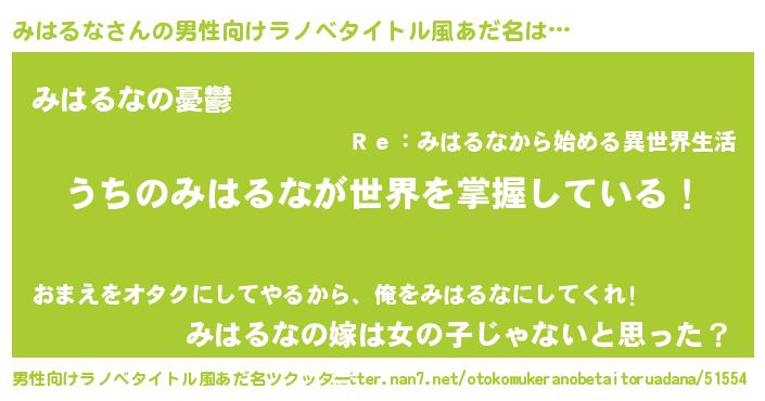 | 胡散臭い通販商品みたいなあだ名 | 『億万長者になれるブレスレット…その名も「みはるな」』 |
