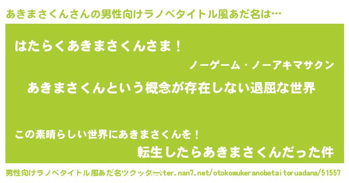 | 女子向けラノベタイトル風あだ名 | 『あきまさくんの契約王妃』 |