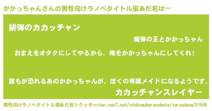 | 女子向けラノベタイトル風あだ名 | 『かかっちゃん夫妻のなれそめ』 |