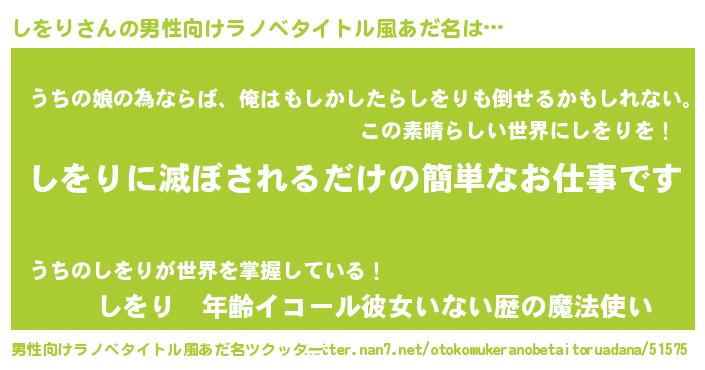 | 胡散臭い通販商品みたいなあだ名 | 『運命の人と巡り会える高級そうな壺…その名も「しをり」』 |