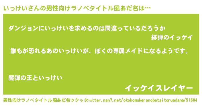 | ヒーロー風カッコイイあだ名 | 『ネオイッケイ』『魔戒騎士イッ』 |