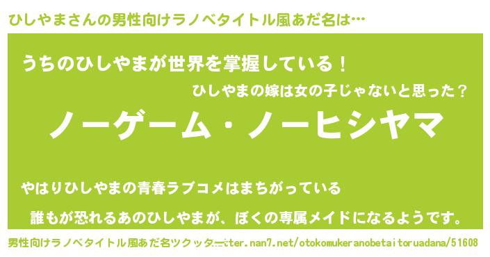 | ヒーロー風カッコイイあだ名 | 『慈愛の使者ひしやま』『ネオヒシヤマ』 |