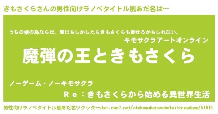 | 意味不明あだ名 | 『住所不定無職きもさくら(53歳)』 |