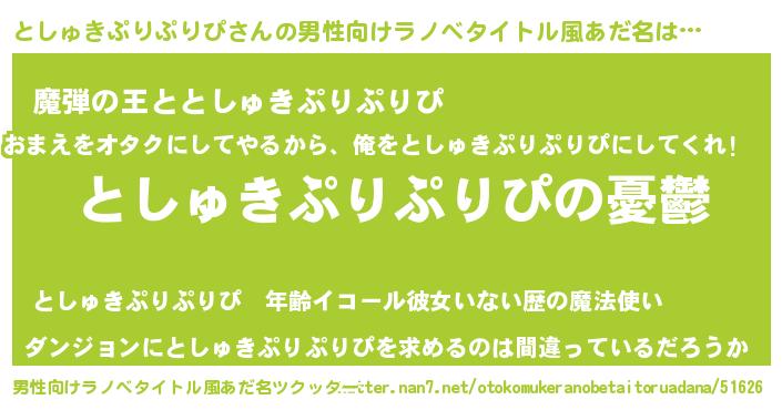 | 女子向けラノベタイトル風あだ名 | 『(仮)としゅきぷりぷりぴのやんごとなき事情』 |
