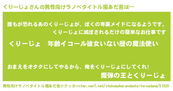 | ヘコむあだ名 | 『くりーじょ(笑)』『酢こんぶ』 |