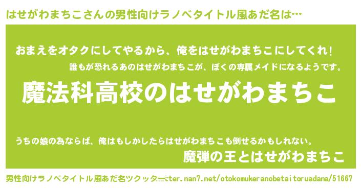 | 意味不明あだ名 | 『自称はせがわまちこ』 |