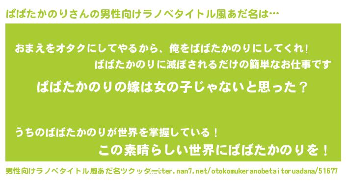 | 女子向けラノベタイトル風あだ名 | 『ばばたかのり様がみてる』 |