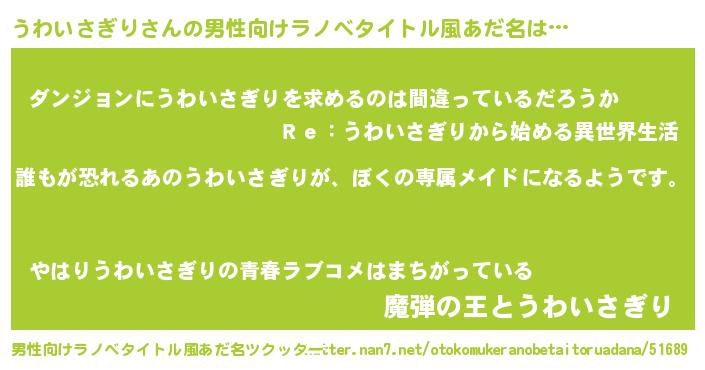 | 意味不明あだ名 | 『永久保存うわいさぎり』 |