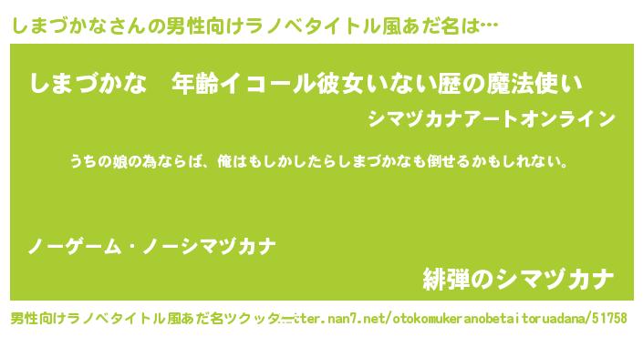 | 女子向けラノベタイトル風あだ名 | 『しまづかなの婚約者』 |