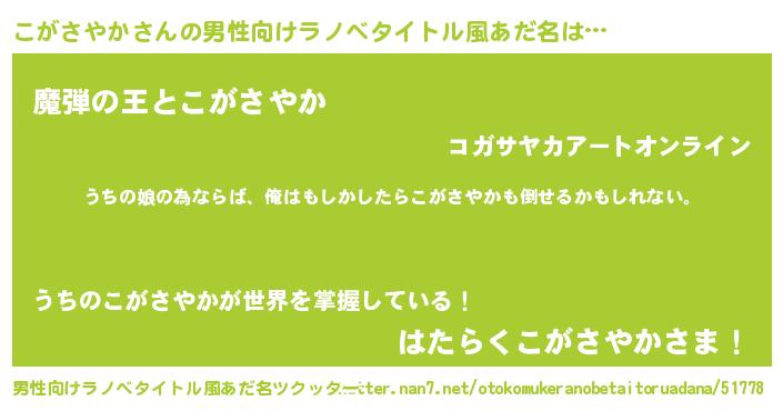 | 女子向けラノベタイトル風あだ名 | 『こがさやか伯爵の花嫁』 |