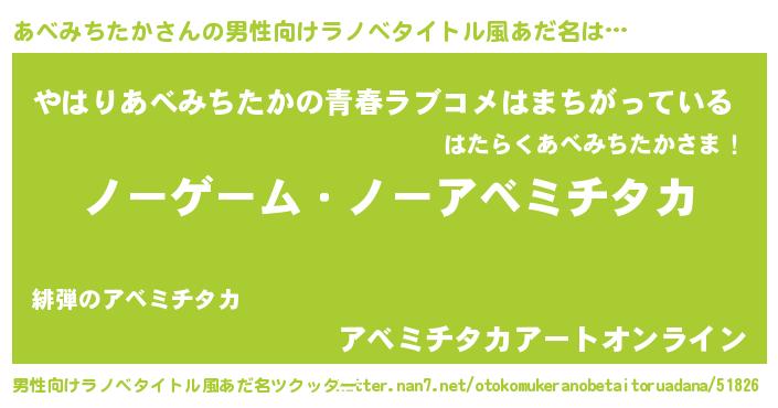 | 女子向けラノベタイトル風あだ名 | 『死神あべみちたかの再婚』 |