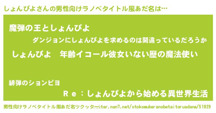 | 女子向けラノベタイトル風あだ名 | 『しょんぴよの玉の輿計画!』 |
