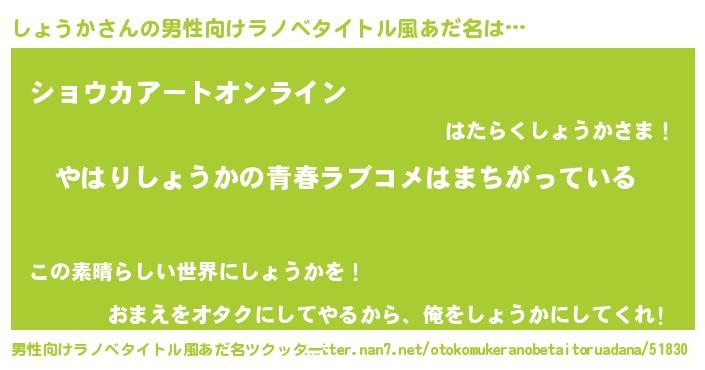 | ファンタジー風あだ名 | 『エターナルショウカー』『ショフェル』 |