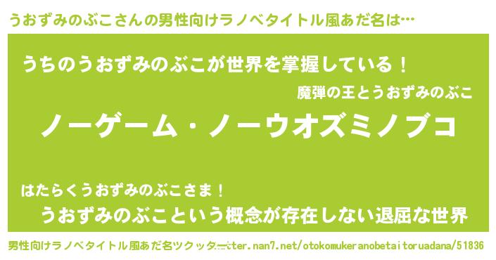 | 女子向けラノベタイトル風あだ名 | 『死神うおずみのぶこの再婚』 |