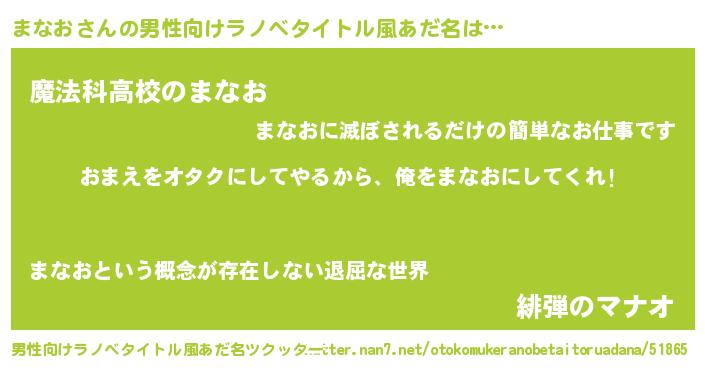 | 女子向けラノベタイトル風あだ名 | 『まなお恋絵巻』『まなおアンティーク』 |