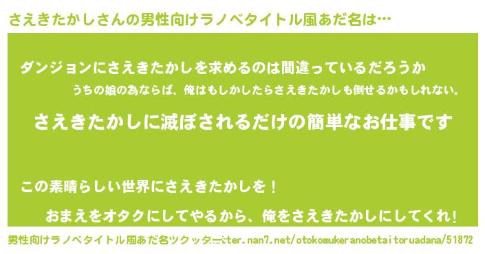 さえきたかしさんの男性向けラノベタイトル風あだ名をツクッター!