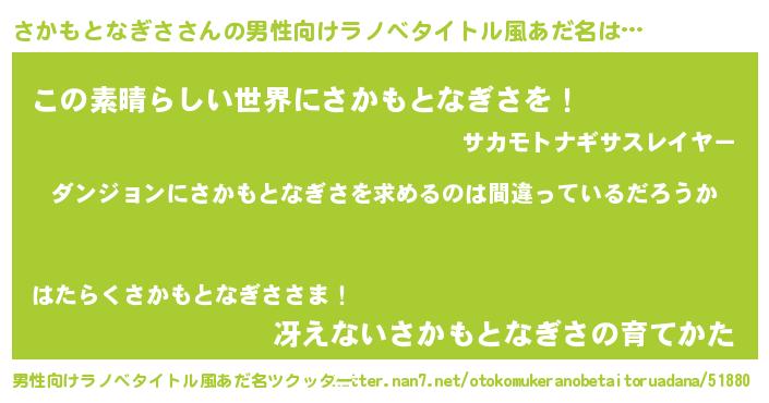 | 女子向けラノベタイトル風あだ名 | 『さかもとなぎさは平凡を望む』 |