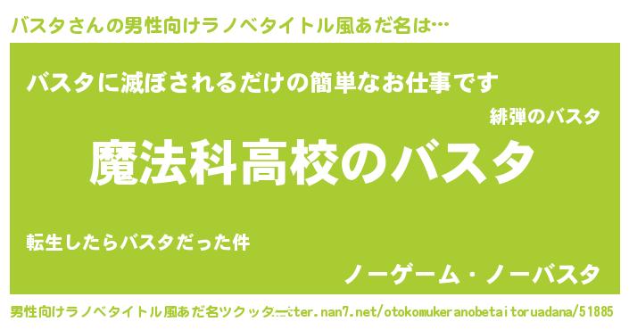 | 女子向けラノベタイトル風あだ名 | 『バスタなんてお断りですっ。』 |