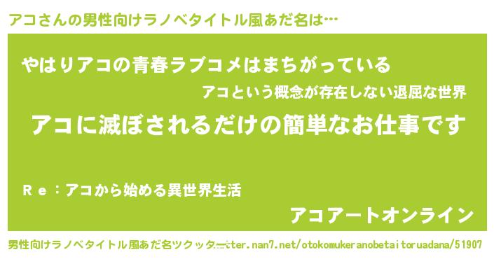| ファンタジー風あだ名 | 『エターナルアコー』『アコフェル』 |