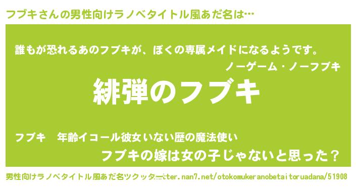 | 女子向けラノベタイトル風あだ名 | 『シンデレラフブキ家の靴箱館』 |