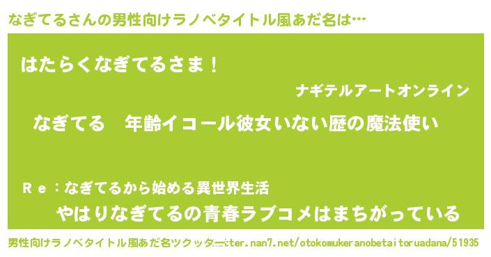 | ヒーロー風カッコイイあだ名 | 『ウルトラなぎてるマン』『仮面ナギダー』 |