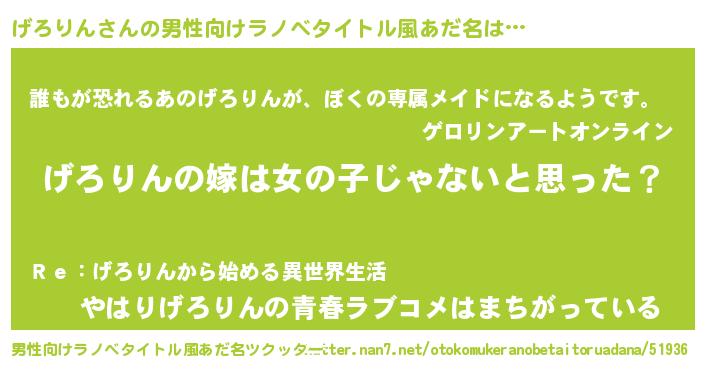 | 女子向けラノベタイトル風あだ名 | 『げろりん様がみてる』『闇のげろりん』 |