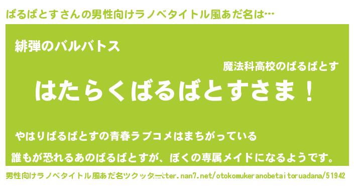 | 胡散臭い通販商品みたいなあだ名 | 『来世でも幸せになれる健康食品…その名も「ばるばとす」』 |