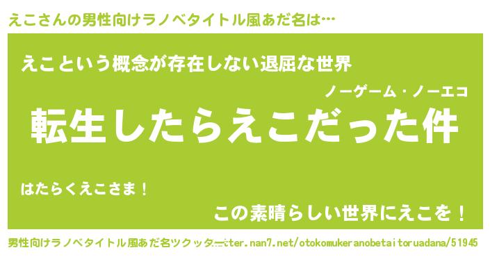 | 女子向けラノベタイトル風あだ名 | 『えこの玉の輿計画!』『えこ恋絵巻』 |