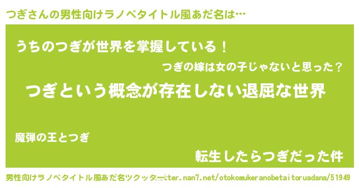 | 女子向けラノベタイトル風あだ名 | 『つぎの契約王妃』『つぎ様がみてる』 |