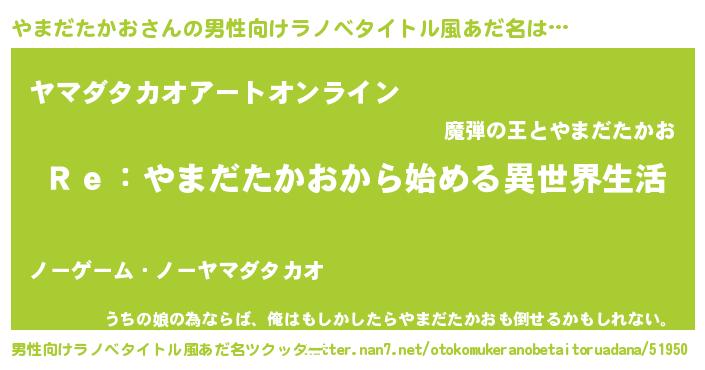 | 女子向けラノベタイトル風あだ名 | 『やまだたかおストレイドッグス』 |