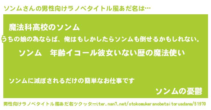 | 女子向けラノベタイトル風あだ名 | 『ソンムの玉の輿計画!』 |